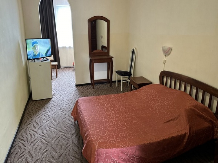 В номерах необходимая мебель: кровати, стулья, журнальный стол и шкаф, а также кондиционер, ТВ и холодильник; санузел и душ.